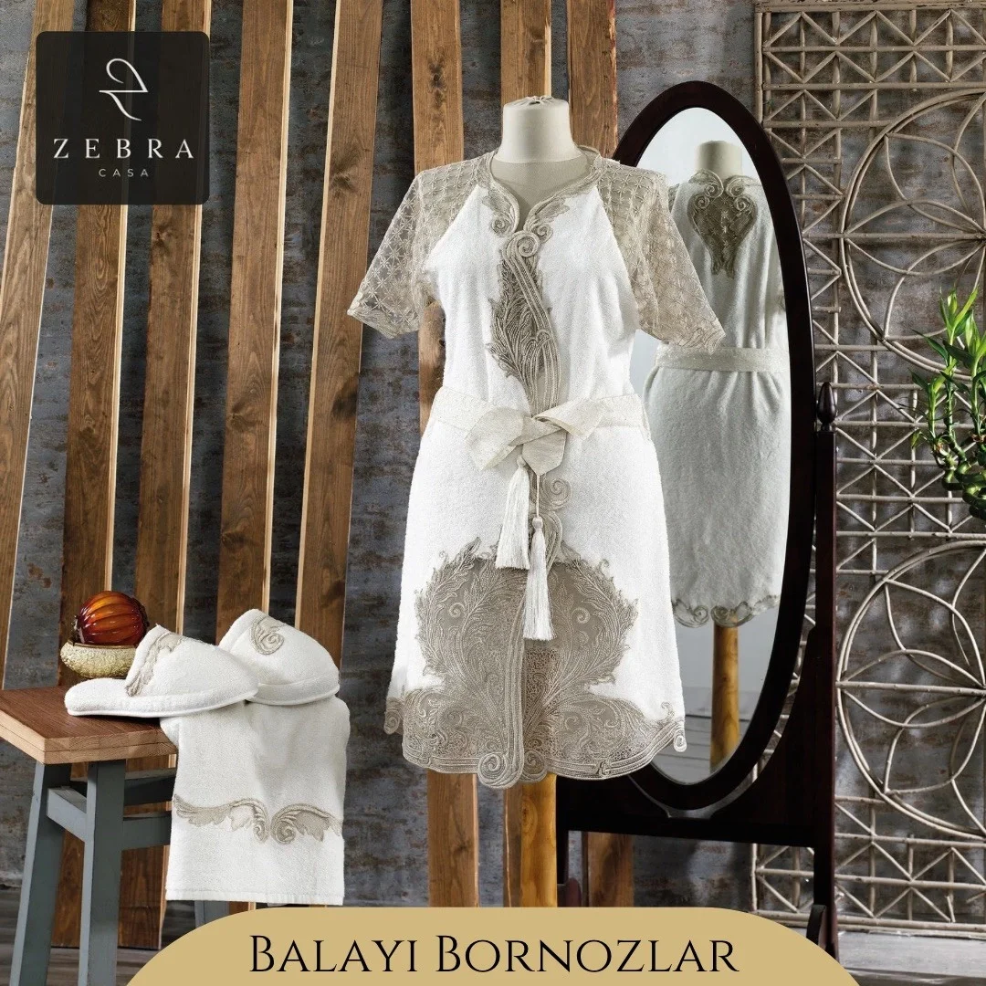 Zebra Casa Mila 6 Parça %100 Pamuk Aile Bornoz Seti-Krem/Krem
