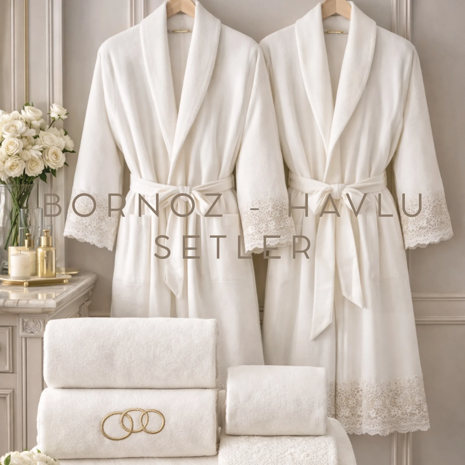 Zebra Casa Elenor Balayı Bornoz Seti-Krem