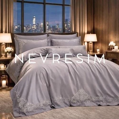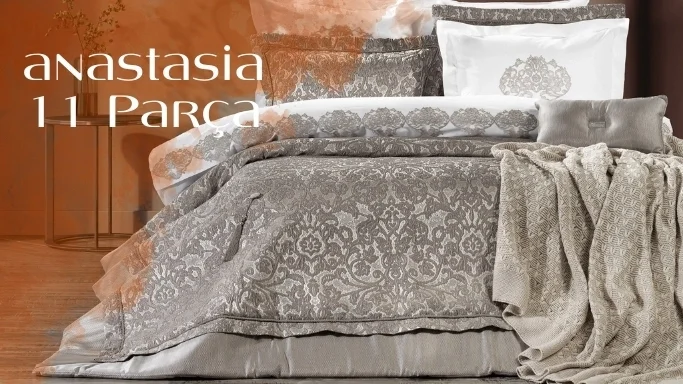 Zebra Casa Soren 7 Parça Çift Kişilik Luxury Dantelli Nevresim Takımı-Bej 400Tc