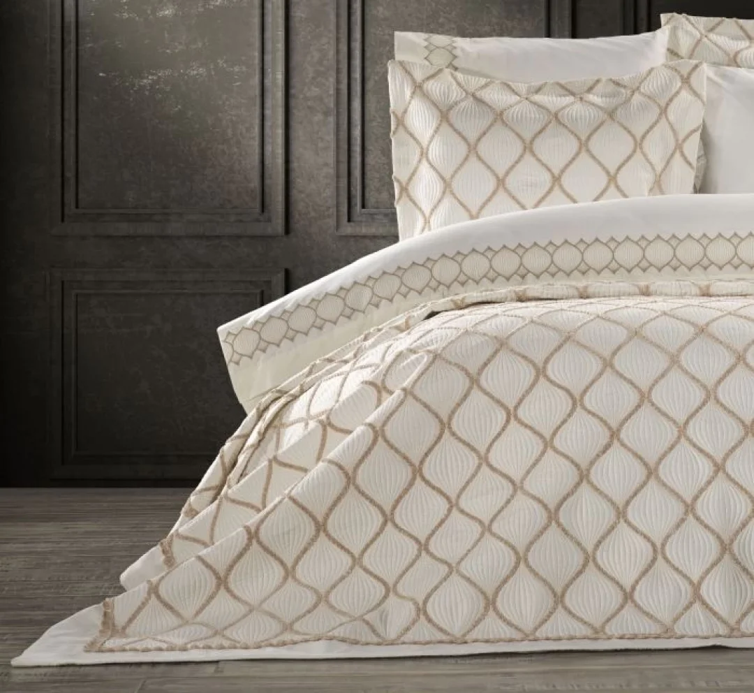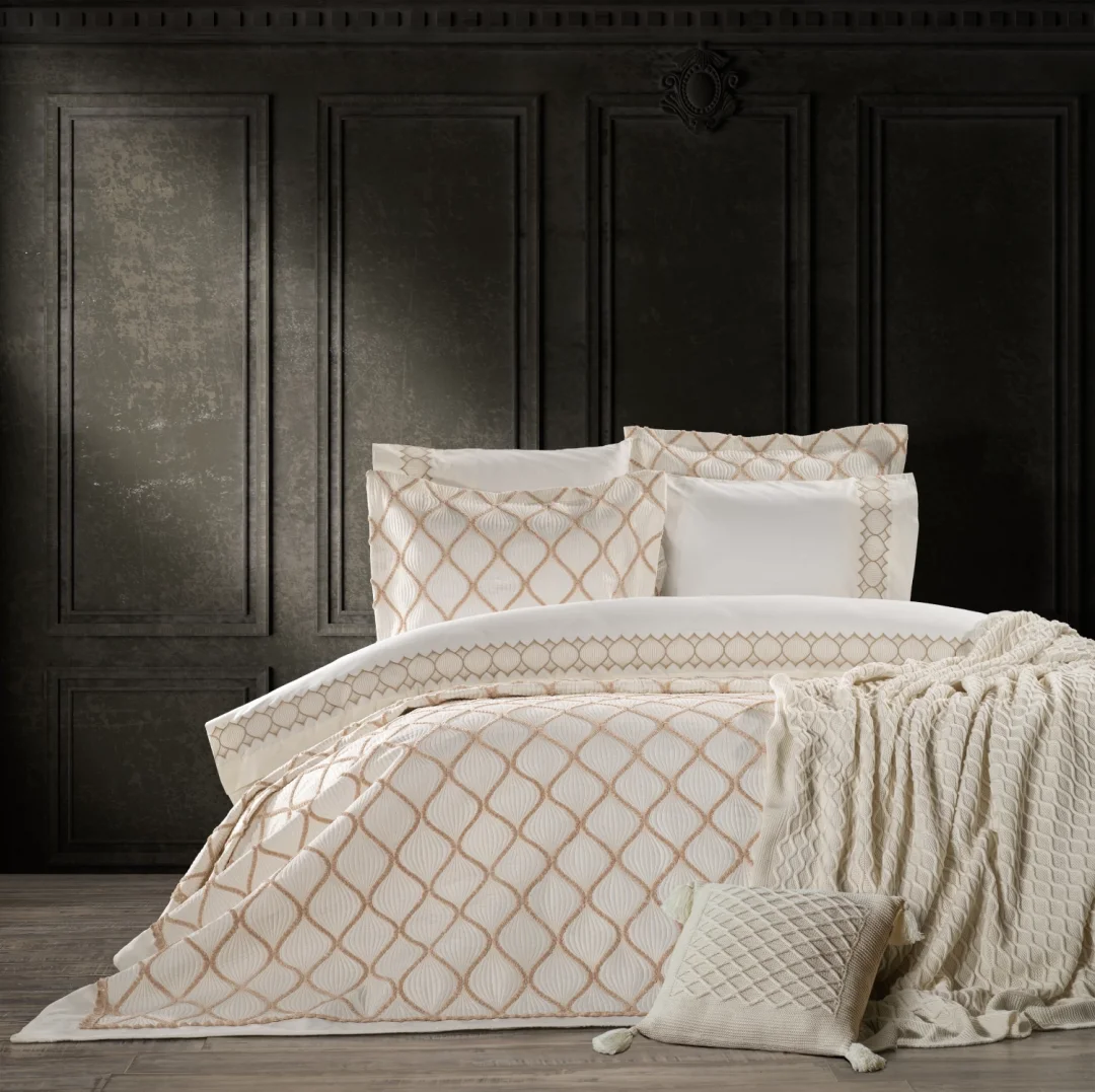 ZebraCasa Belda yatak örtüsü seti toplamda 11 parçadan oluşmaktadır. Yatak örtüsü ekstra ince elyaf dolguludur. Yatak örtüsü üzerinde nakış işlemesi ve kordon nakış detayları mevcuttur. Nevresim kumaşı %100 Pamuk kumaştan üretilmiştir, nevresim kapak kısmında ve oxford yastık