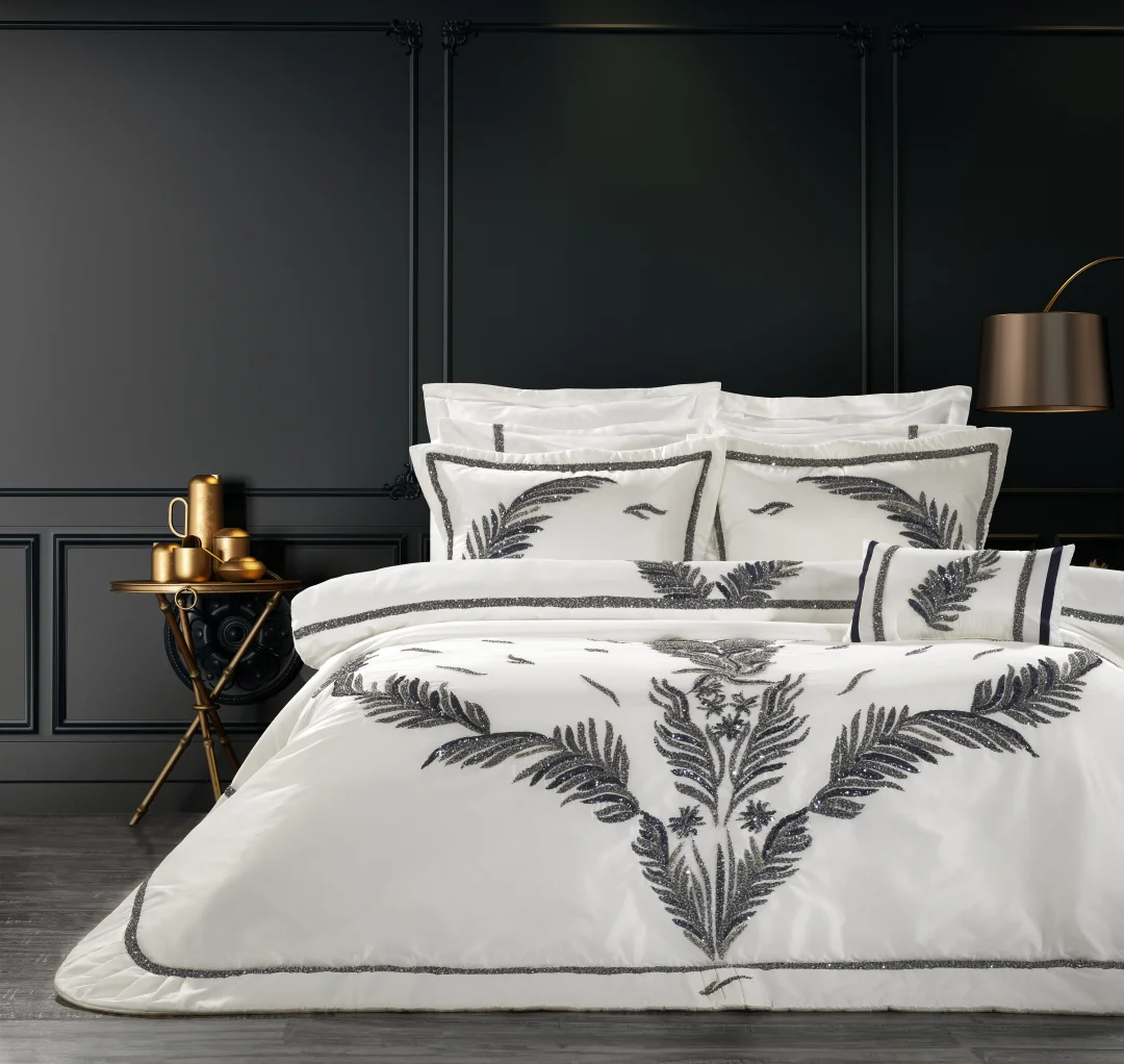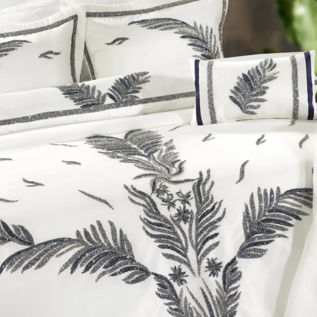 ZebraCasa Caroline çeyiz seti toplamda 10 parçadan oluşmaktadır. Nevresim,çarşaf ve yastık kılıfı kumaşı %100 pamuk saten kumaştan üretilmiştir. Nevresim kapağında ve dekoratif yastık kılıflarında örtü ile aynı modele sahip taş işlemesi detayı bulunmaktadır. Yatak örtüsü ince elyaf dolguludur, kumaş kalitesi ise yüksek gramajlı jakarlı kumaştan üretilmiştir ve örtünün üst kısmında pano şeklinde komple taşlı süsleme bulunmaktadır.