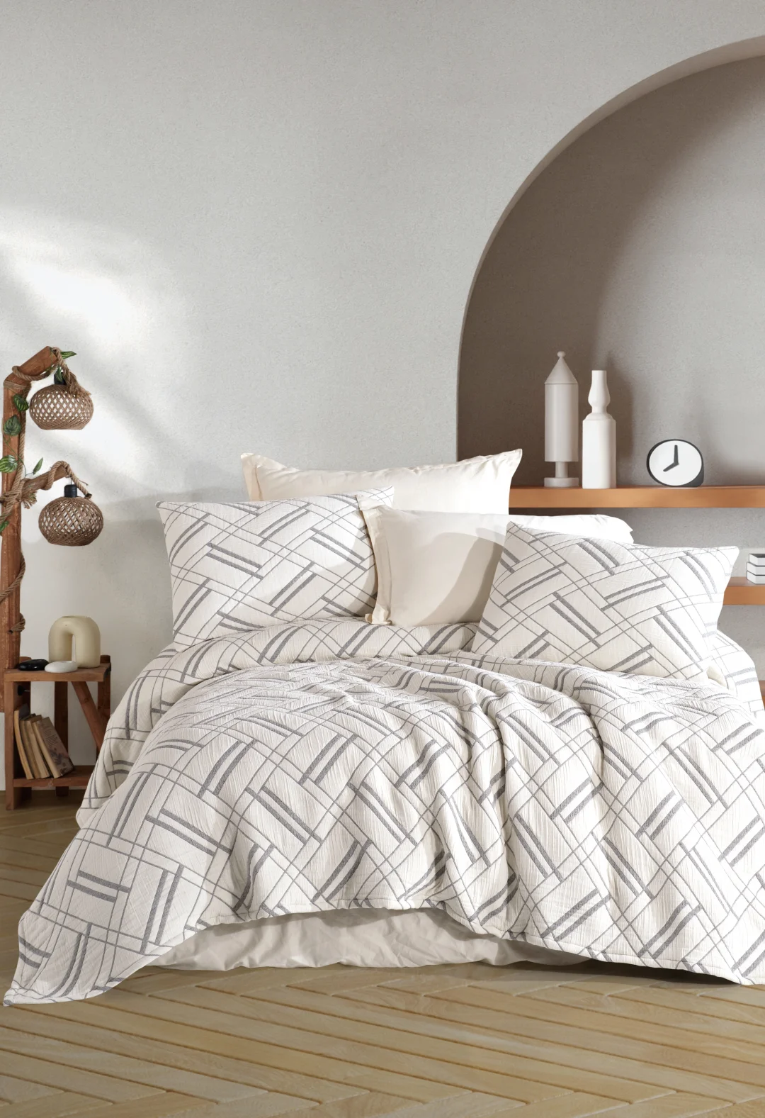 Zebra Casa Claris 3 Parça Yatak Örtüsü Çift Kişilik-Antrasit