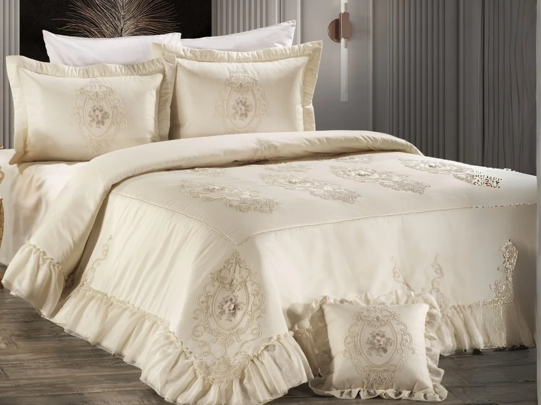 Zebra Casa Floransa Yatak Örtüsü Toplamda 4 Parçadan Oluşmaktadır. Zebra Casa diğer ürünlerinde olduğu gibi Floransa Yatak Örtüsünde Kalitesinden Ödün Vermeden, Üst Düzey Ürününü Sizlere Sunmuştur. Flora Yatak Örtüsü Kumaşı ,Yüksek Gramajlı İpek Tafta Kumaştan İmal Edilmiştir. Zebra Casa Floransa Yatak Örtüsü Üzerinde Zebra Casa' nın Kendi Üretimi Olan, Özel Olarak Tasarlanmış 3 Boyutlu Dantel Kullanılmıştır. Zebra Casa Floransa Yatak Örtüsü İç Malzemesinde Orta Kalınlıkta Elyaf Kullanılmıştır.
