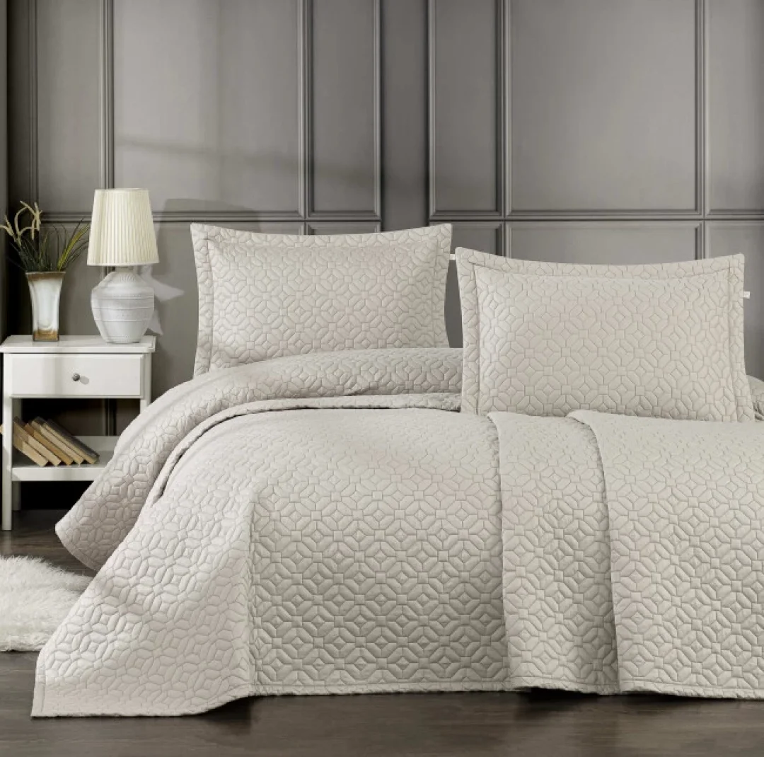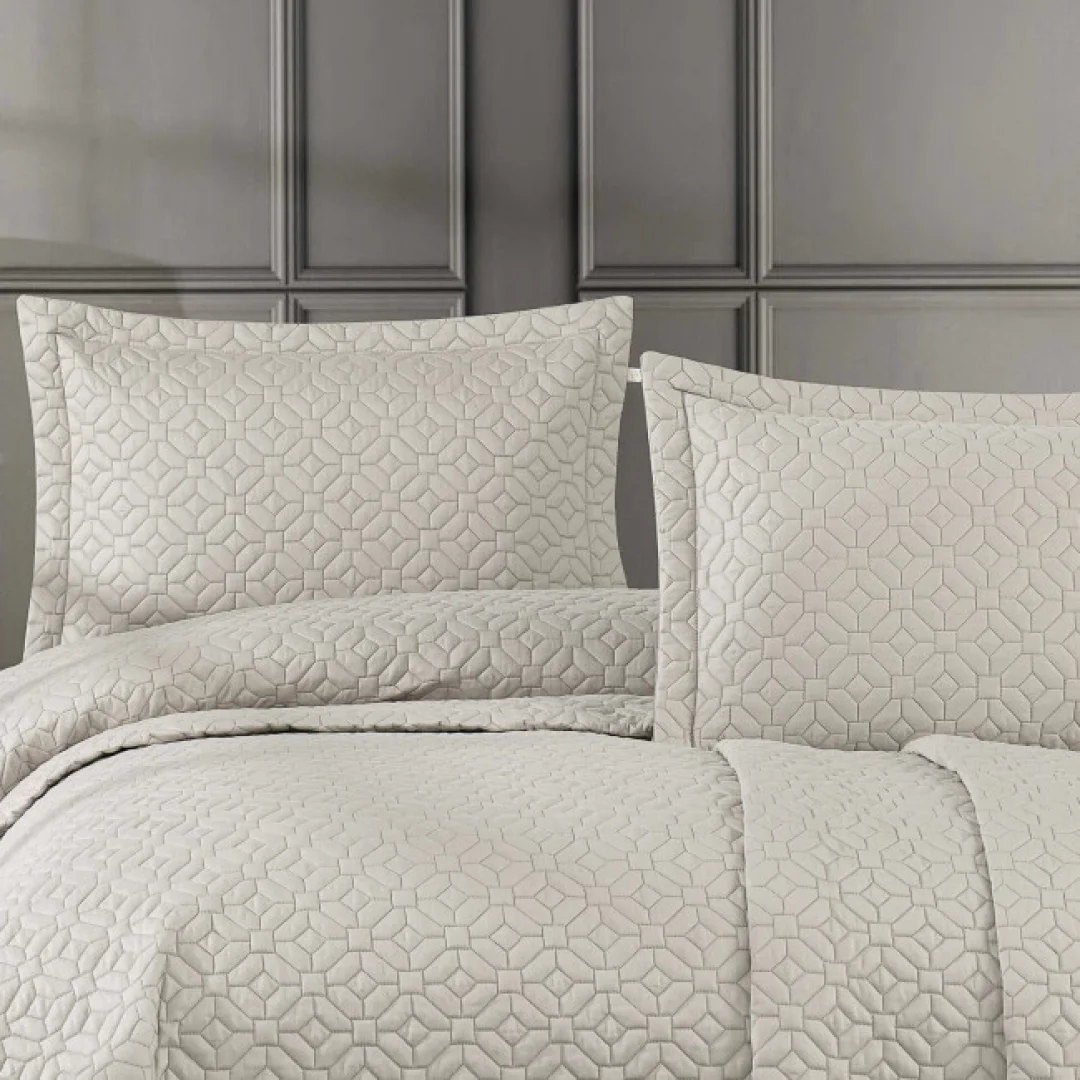 Zebra Casa Frezya 3 Parça Yatak Örtüsü Çift Kişilik-Bej