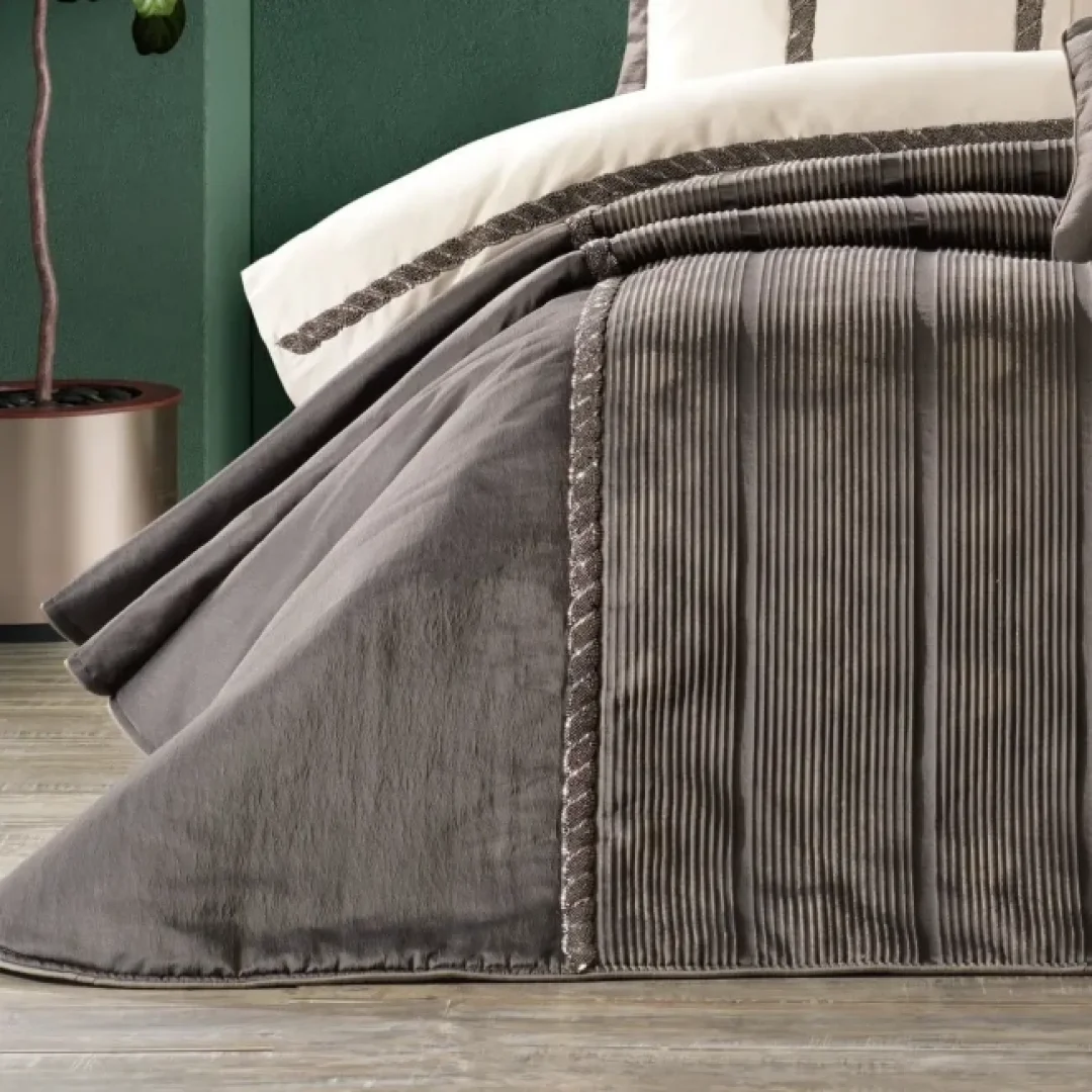 ZebraCasa Grace çeyiz seti toplamda 10 parçadan oluşmaktadır. Nevresim,çarşaf ve yastık kılıfı kumaşı %100 pamuk saten kumaştan üretilmiştir. Nevresim kapağında ve dekoratif yastık kılıflarında örtü ile aynı modele sahip taş işlemesi detayı bulunmaktadır. Yatak örtüsü ince elyaf dolguludur, kumaş kalitesi ise yüksek gramajlı jakarlı kumaştan üretilmiştir ve örtünün sağ ve sol kısımında ise şerit halinde taş işlemesi mevcuttur.
