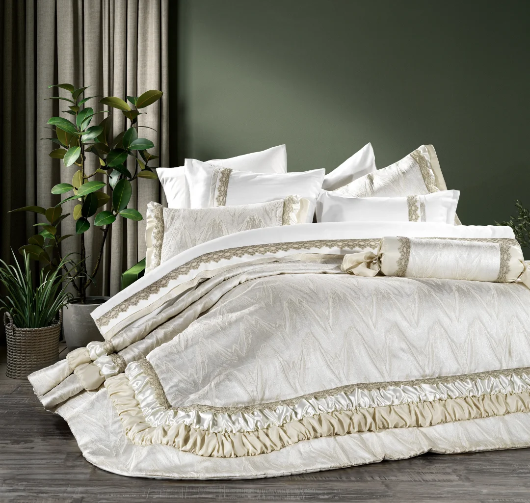 Zebra Casa Holly Çeyiz Seti Toplamda 10 Parçadan Oluşmaktadır. Holly Çeyiz Seti Sadeliğin Verdiği Şıklığıyla Öne Çıkmaktadır. Kumaş Üzerinde Modern Çizgilere Sahip Deseniyle, Eteklerine Uygulanan Fırfır O Kadar Ahenk İçinde Harmanlaşmıştır ki Bakmaya Kıyamayacağımız Bir Tasarım Ortaya Çıkmıştır. Her Tarz Mobilyalarda, Her Tarz Oda Konseptinize Uyum Sağlamaktadır. Yatak Örtüsü Grupları İçin Bir Yarışma Düzenlenmiş Olsa Kesinlikle İlk 3 Tasarımın İçinde Görebilirsiniz. Nevresim Takımı %100 Pamuk Kumaştan Üretilmiştir. Çeyiz Setinin Diğer Ürünleri İse Yüksek Gramajlı Kumaşlardan Üretilmiştir. Çeyiziniz ve Odanız İçin En İyisi, En Güzeli Bir Tık Uzağınızdadır.