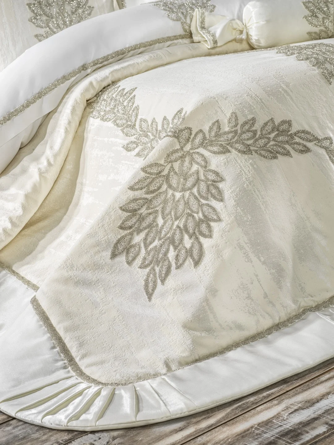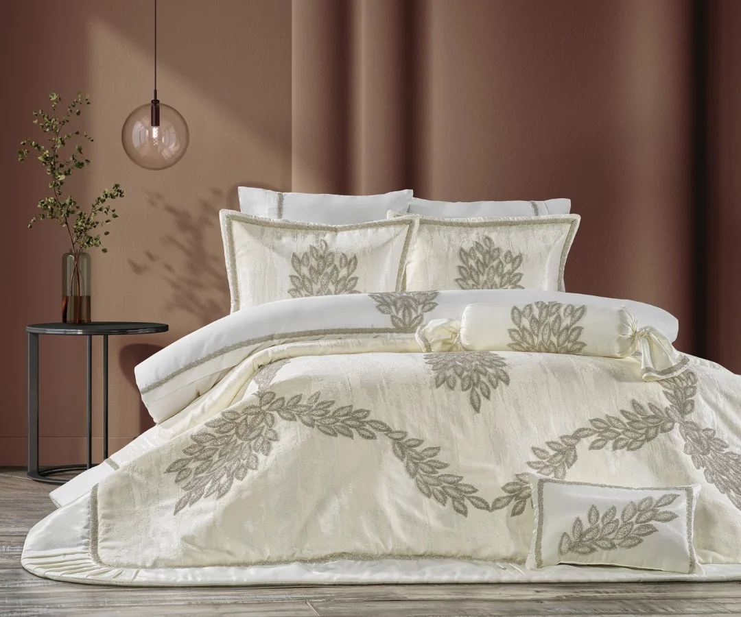 Zebra Casa Karen Çeyiz Seti Toplamda 11 Parçadan Oluşmaktadır. Karen Çeyiz Seti Işıl Işıl Görüntüsüyle Yatak Odanızın Dekorunda Liderliği Eline Alacaktır. Üzerinde Yaprak Motifleri Üzerine Taşlarla Süslenmiş Tasarıma Sahiptir. Bu Sayede Modern, Modern Avangard ve Avangard Mobilyalarınızın Üstesinden Gelebilecek Tek Yatak Örtüsü Karen'dir. Üzerinde Şönil Kumaşın Verdiği Sağlamlıkla, Zebra Casa'nın Özel Taş Tasarımlarıyla Bütünleşerek Ortaya Eşsiz Bir Ürün Çıkmıştır. Nevresim Takımı %100 Saf Pamuk Saten Kumaştan Üretilmiştir. Şıklığı, Konforu ve Birazda Abartıyı Sevenler İçin Karen Çeyiz Seti Tam Sizler İçin.