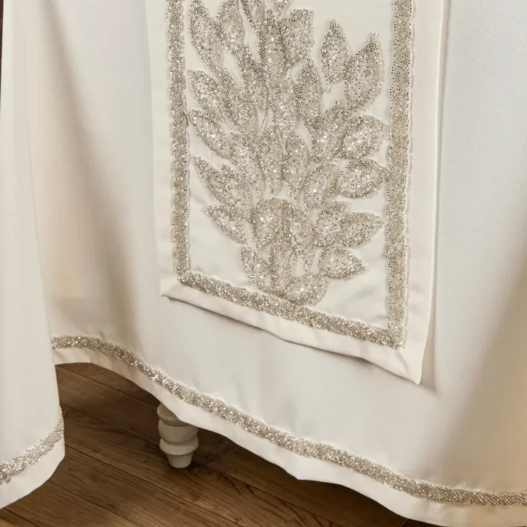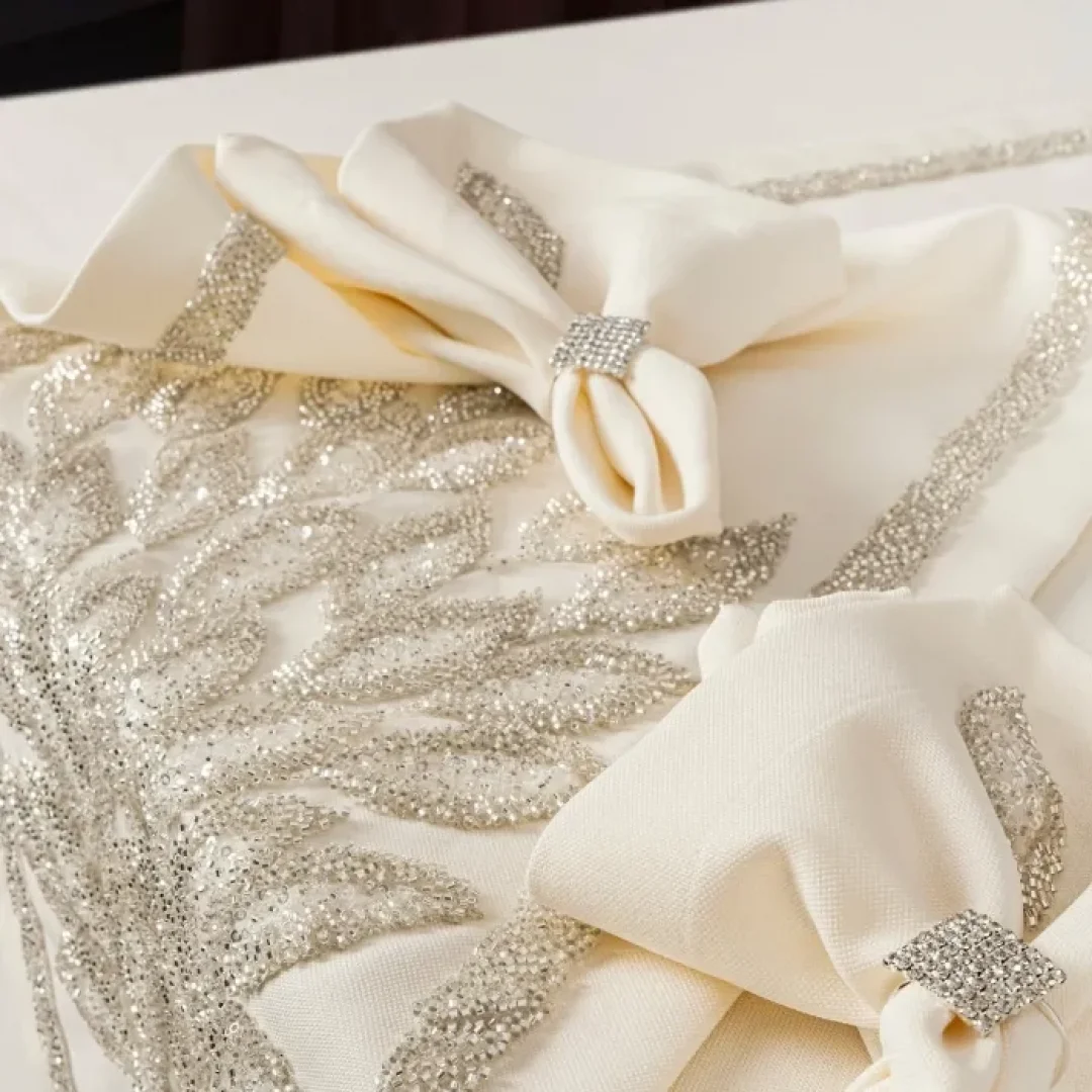 Zebra Casa Karen Masa Örtüsü Seti Toplamda 26 Parçadan Oluşmaktadır. Zebra Casa'nın Özel Üretimi Boncuk İşlemeli Yaprak Motifini Anımsatan Deseniyle Misafirlerinize İhtişamlı Bir Masa Hazırlayın. Gözleri Kamaştıran Parlaklığıyla Sizi Kıskananlar Yemekleri Bilerek Örtünüze Dökebilirler. Masa Örtüsü Kumaşı Yüksek Sıklıkta Dokunmuş, Teflonlanma Özelliğine Sahip Leke Tutmaz Kumaş Tercih Edilmiştir. Ortasında İse 40x140cm Ebatında Taş Efektli Runner Kullanılmıştır. Peteçe Detaylarında Yine Aynı Şekilde Taş Detaylar İşlenmiş Olup, Gümüş ve Taşlı Yüzükleriyle Tüm Dİkkatleri Üzerine Çekmektedir. Yemek Lezzetinin Önüne Geçecek Karen Setimiz, Sizleri Beklemektedir.