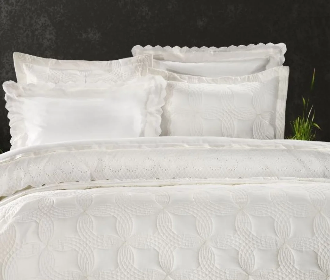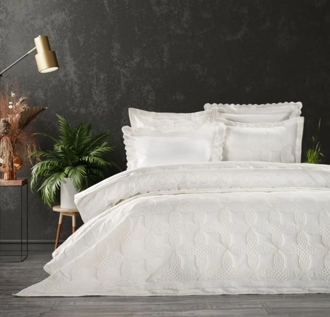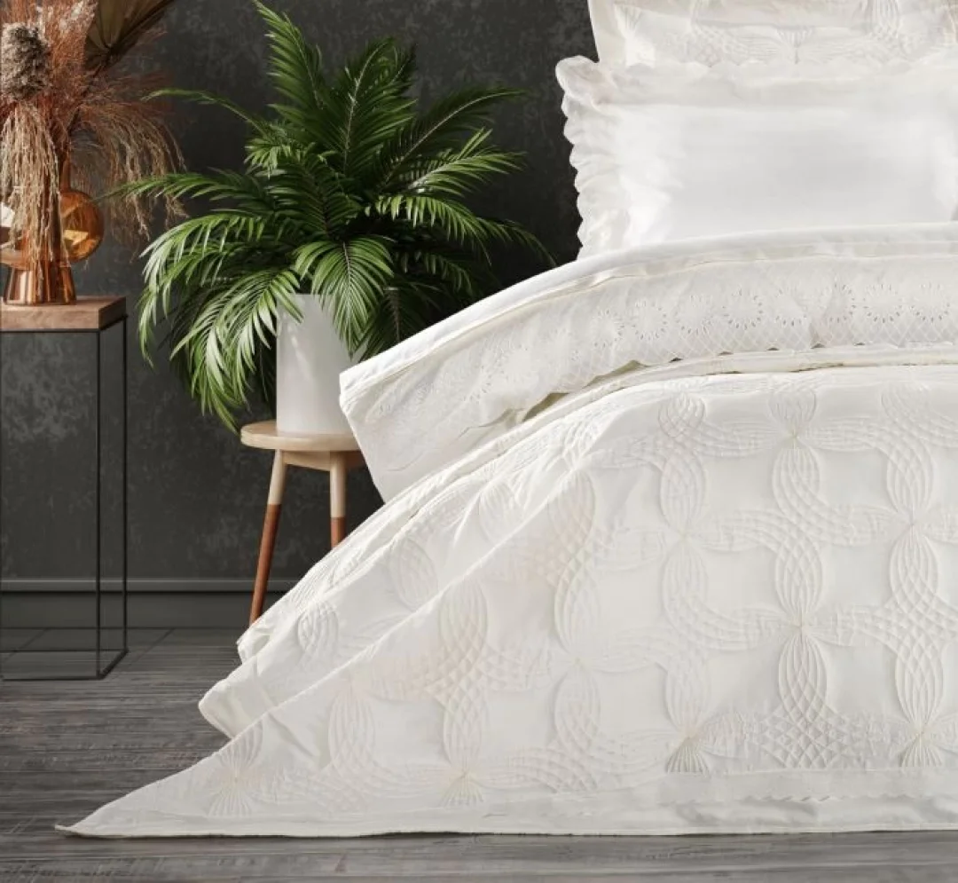 Zebra Casa Liset yatak seti toplamda 9 parçadan oluşmaktadır. Yatak örtüsü ince elyaflı ve üzerinde nakış işlemesi uygulanmıştır. Nevresim kumaşı yüksek sıklıkta dokunmuş %100 Pamuk kumaştan üretilmiştir. Nevresim kapağında ve oxford yastıklarında boride işlemesi bulunmaktadır, yatak örtüsü kenar uçlarında bordür bulunmaktadir.