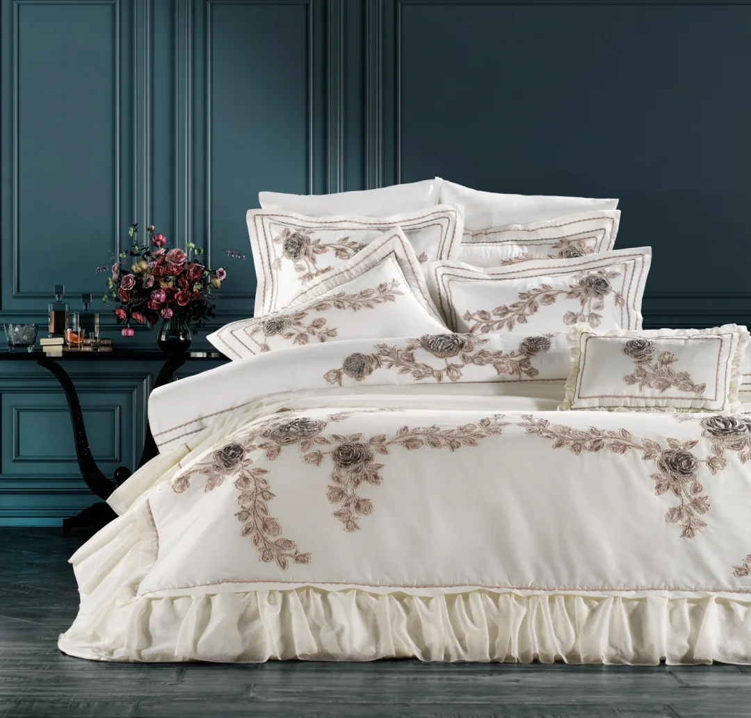 Zebra Casa Loretta yatak örtüsü toplamda 4 parçadan oluşmaktadır. Tafta kumaştan üretilmiştir. Ürün üzerinde Zebra Casa'nın kendi üretimi olan özel tasarım dantel kullanılmıştır. Yatak Örtüsü %100Poly