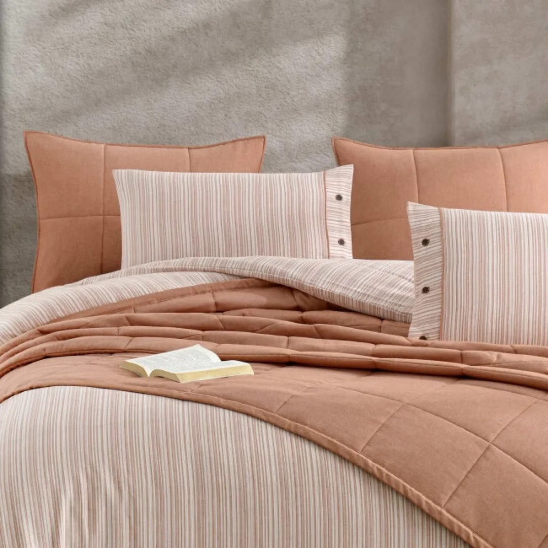 Zebra Casa Olive 5 Parça Yatak Örtüsü Seti Tek Kişilik-Kiremit