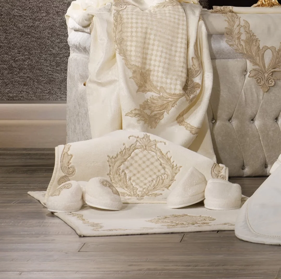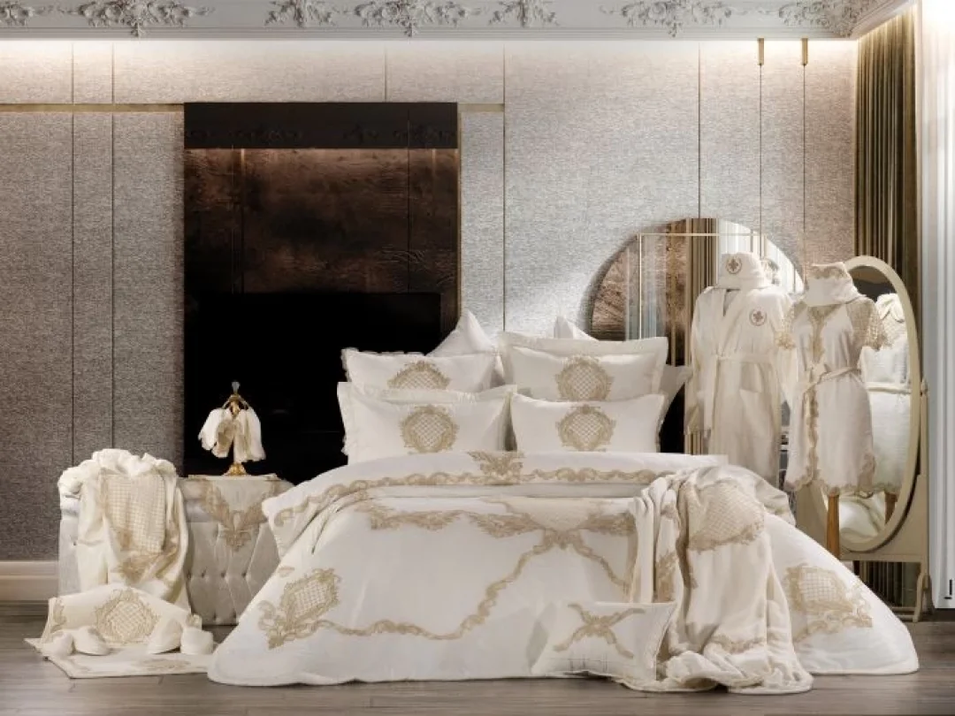 Zebra Casa Ornella Çeyiz Seti toplamda 23 Parçadan oluşmaktadır. Yatak örtüsü iç dolgusu elyaflıdır. Setin üzerindeki tüm danteller Zebra Casa'nın kendi üretimi kabartmalı dantel kullanılmıştır. Battaniye kenarında ekstradan parlak telkari dantel süslemesi kullanılmıştır. Paspaslar %100 pamuktan üretilmiştir. Bornoz ve havlu ürünleri %70Bambu ve %30 Pamuktan üretilmiştir. Nevresim kumaşı %100 Pamuktur.