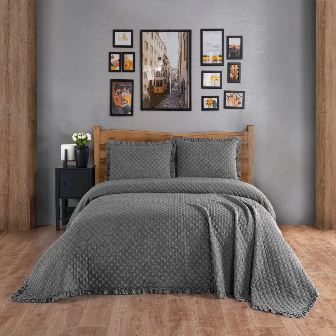 Zebra Casa Rody Tek Kişilik Yatak Örtüsü-Antrasit