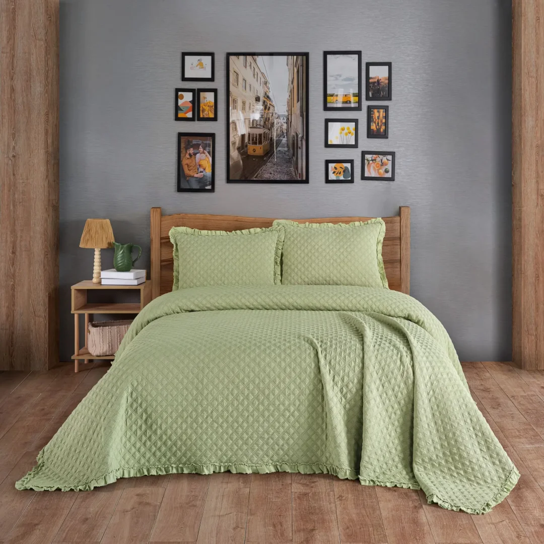Zebra Casa Rody Tek Kişilik Yatak Örtüsü-Yeşil