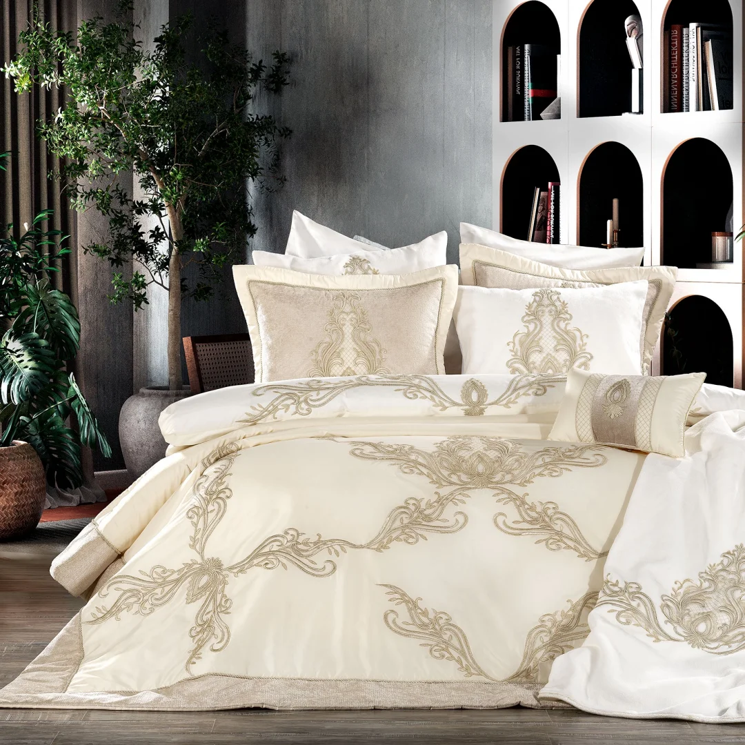 Zebra Casa Tiara Çeyiz Seti toplamda 11 Parçadan oluşmaktadır. Yatak örtüsü iç dolgusu elyaflıdır. Setin üzerindeki tüm danteller Zebra Casa'nın kendi üretimi özel tasarım dantel kullanılmıştır. Nevresim kumaşı %100 Pamuktur. Battaniyenin üzerinde yoğun şekilde dantelle dizayn edilmiştir. Tiara set , yoğun dantel sevenler için özel olarak tasarlanmış tam olarak çeyizlik ürün diyebiliriz.